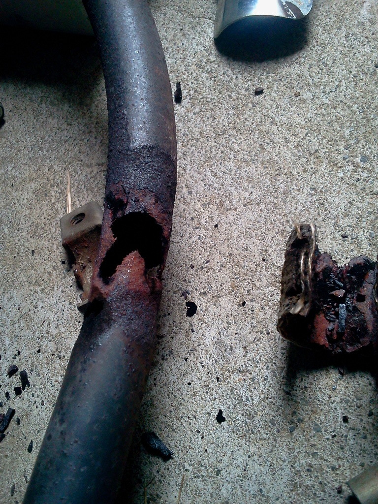 断熱材を巻いているところだけ、1~1.5mmはあろうかと思われるマフラーパイプがこのありさま。