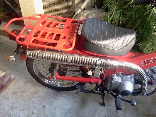 2011年11月07日 壊れていた郵政キャリア 壊れていた郵政キャリアを友人の某バイク店より入手した。 しかしまぁ、郵便屋さんは赤いボックスを後ろのほうに付けて毎日ガンガン走るから、こんなところが両側パックリ割れてしまうんですねぇ、スゴイことですねぇ・・・金属疲労って。 せっかくだからダメ元で溶接で補修してみる。まぁ、でも、溶接すればなんとかなるもんだ。強度的には問題ないか・・・ 下手なモコモコ溶接 そして「R110モンツァレッド」にスプレーし、キャリアを付けてみた。 これからタンデムシートと、BOXを付けようかなー と計画してみる。 「CT110ハンターカブ」カテゴリの最新記事 < 前の記事次の記事 > コメント コメントフォーム 名前 コメント 記事の評価 リセット リセット 顔 星 情報を記憶 コメントを投稿する