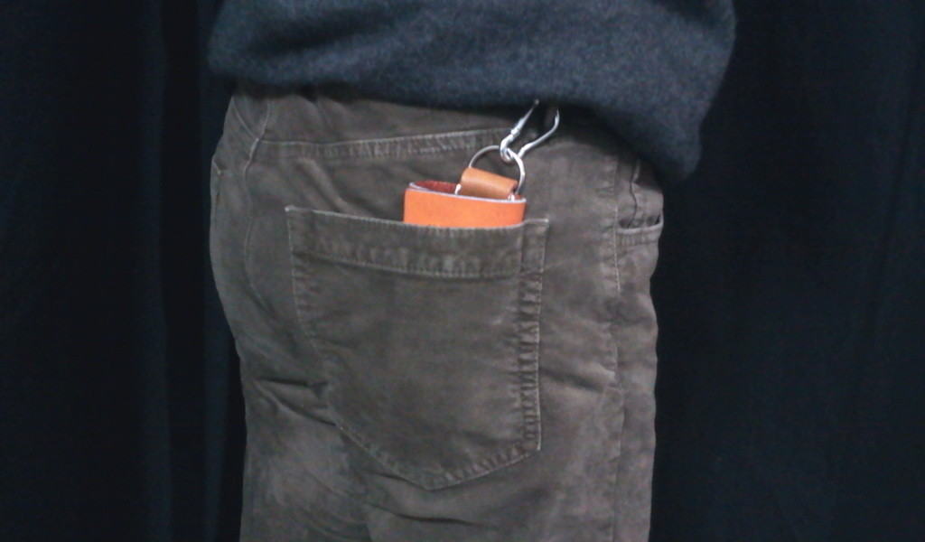 今現在のキーケース、小さいながら電池が入った無線マウスくらいの重さがあります。