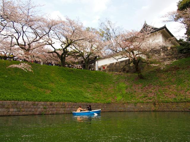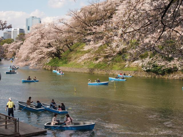 と、そこへ、ボートが見えてきました。千鳥ケ淵ボート場ですね。