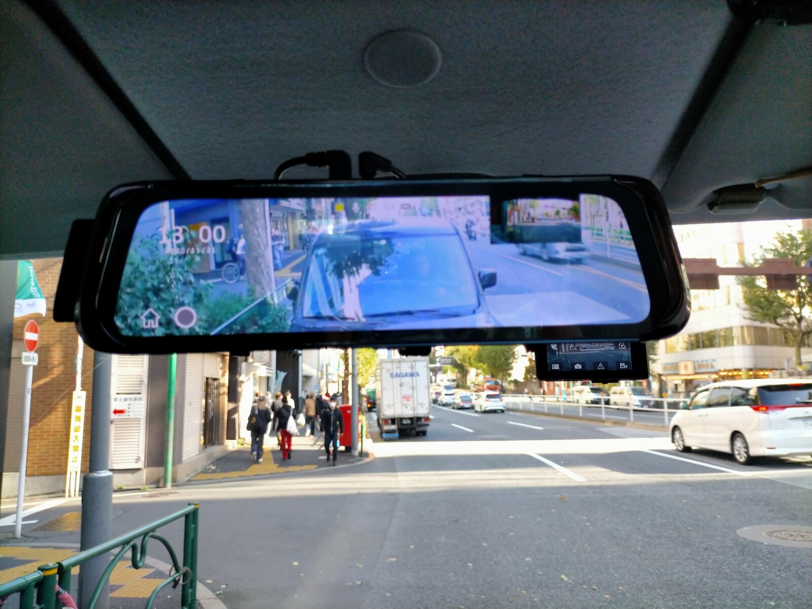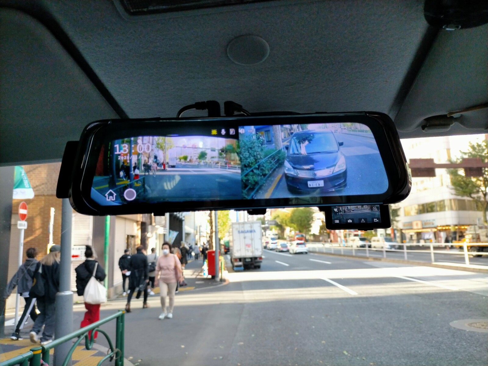 タッチパネル10インチで前後ドライブレコーダーというシロモノ。
