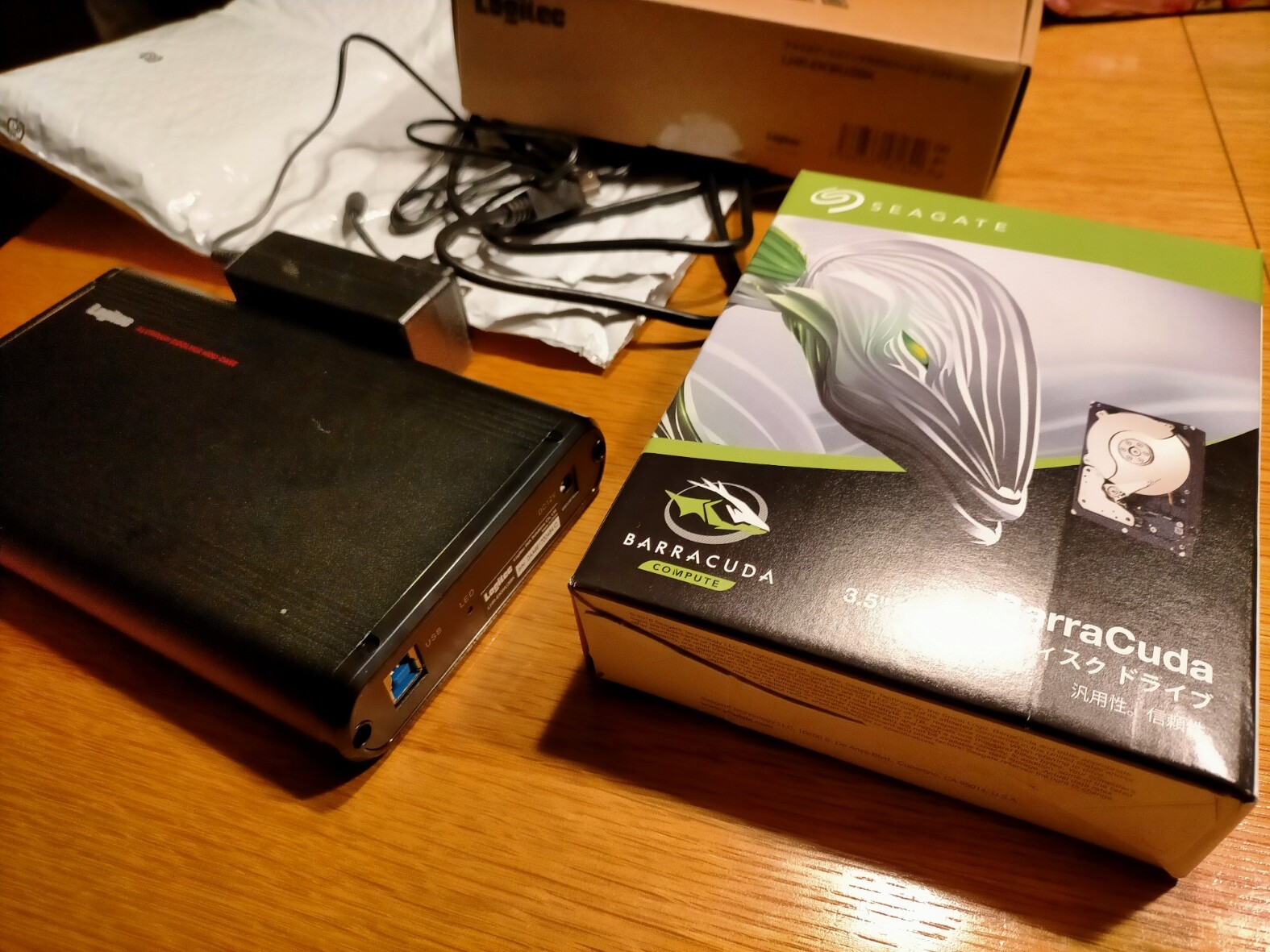 早速、余っていた3TBの3.5インチHDDを仕込んで動作確認。