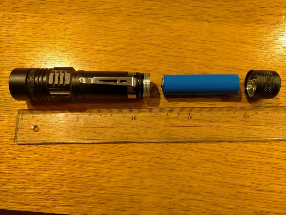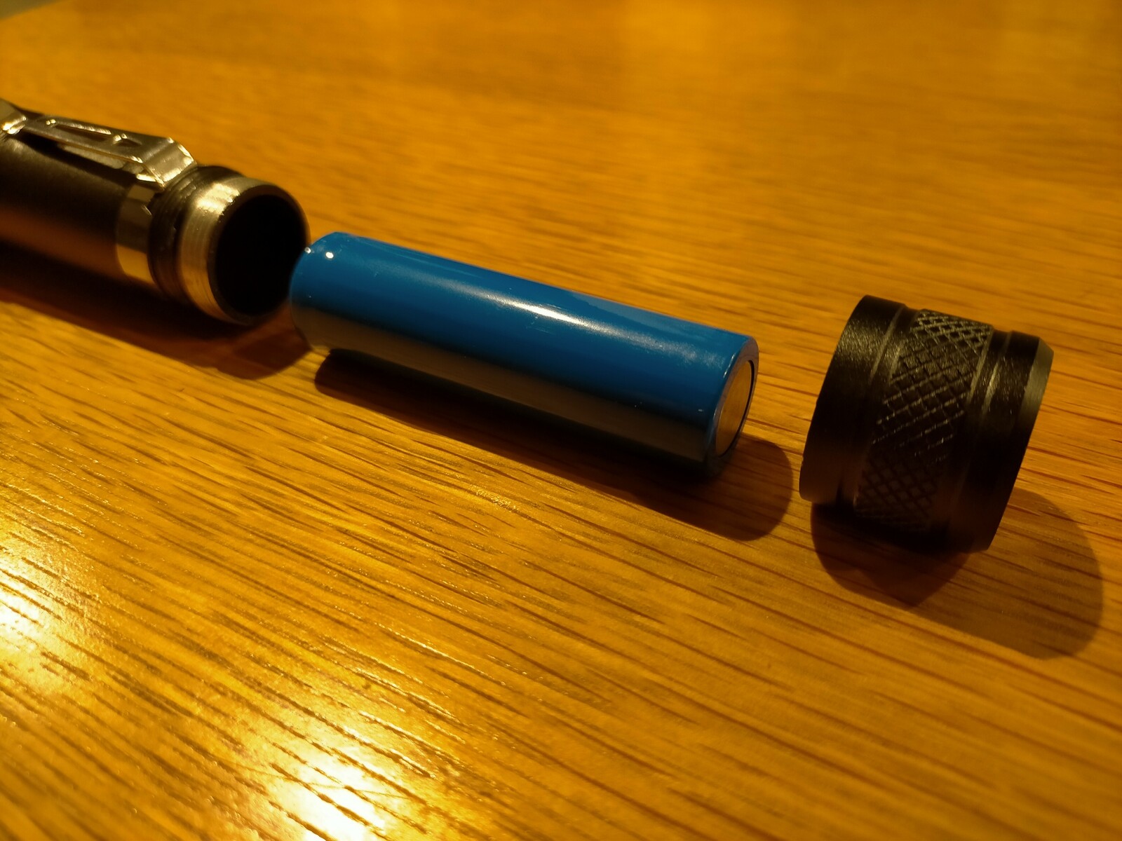 開けると確かに18650が入ってて、バッテリーが逝っても簡単に交換できる。