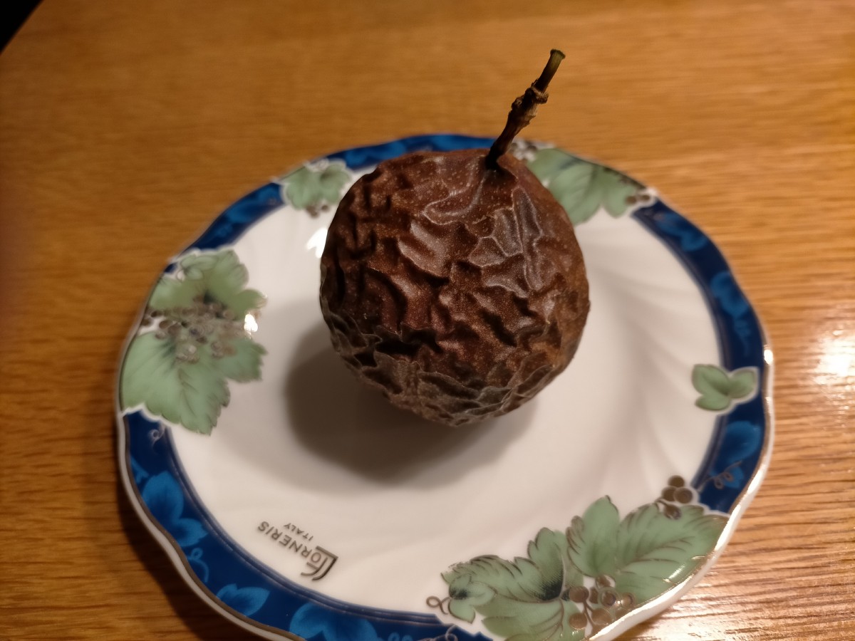 さて、今年実ったのは4個でしたが、10月9日に落果してた3個の実↓は、