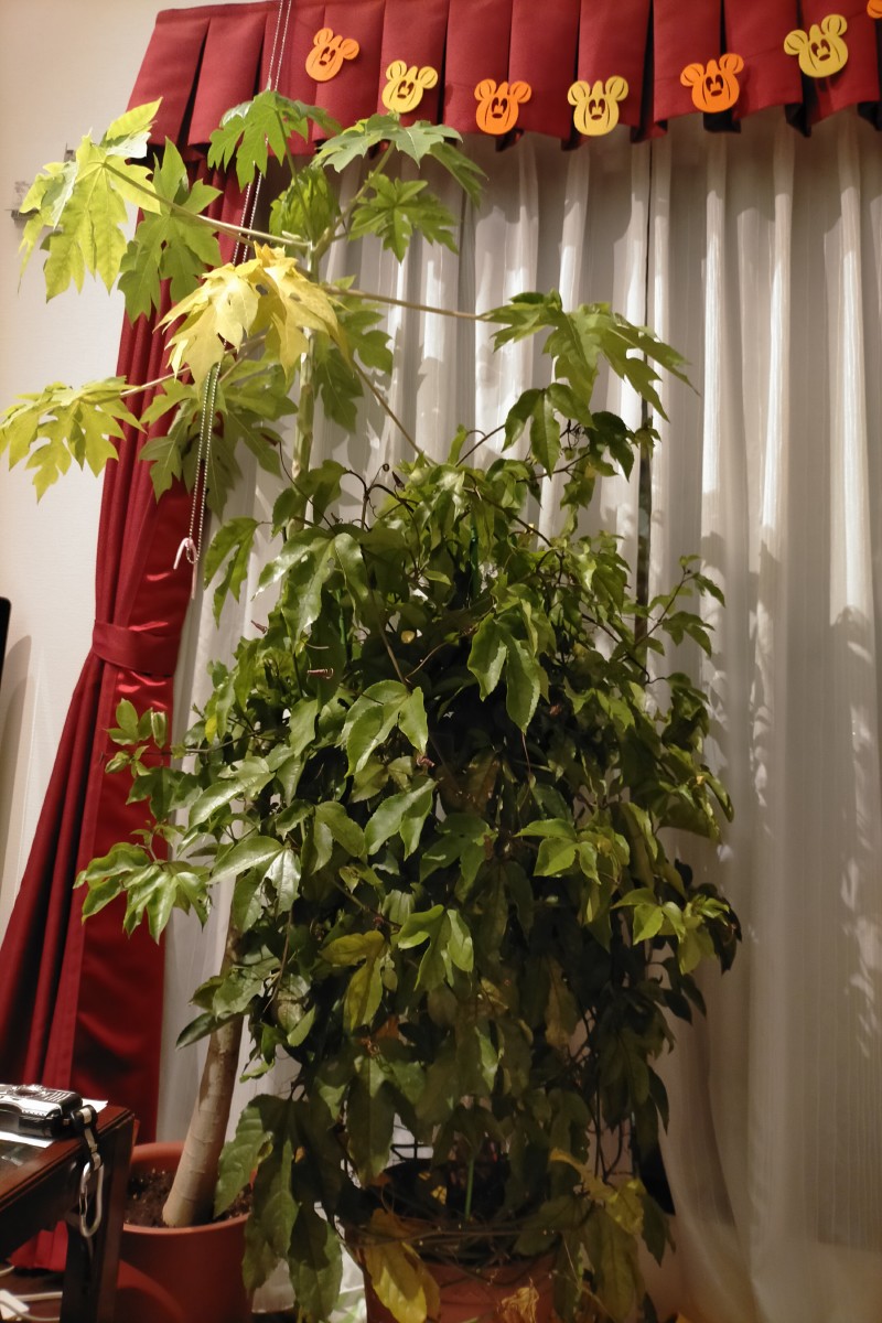 枯れたらいけないので屋内に退避したパッションフルーツ。