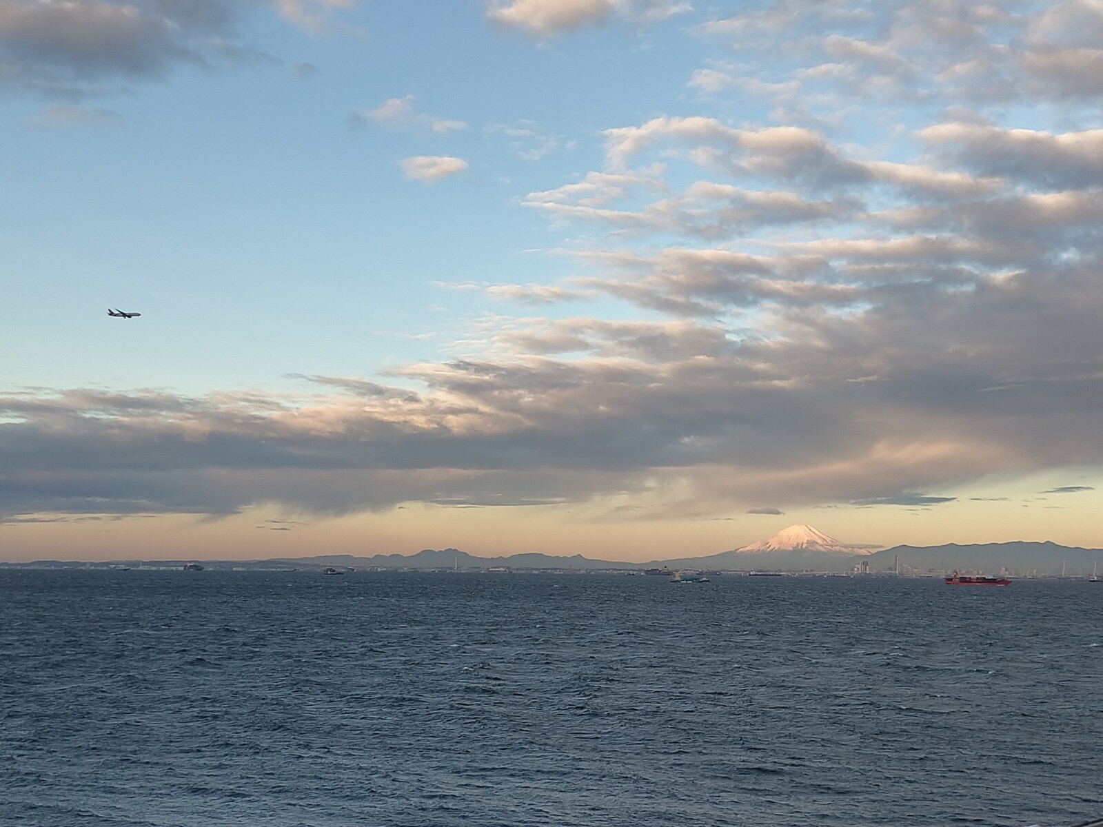 そして帰る間際の写真がこちら。夕日で赤富士っぽくなってたが、やっぱり鉄塔がジャマ?